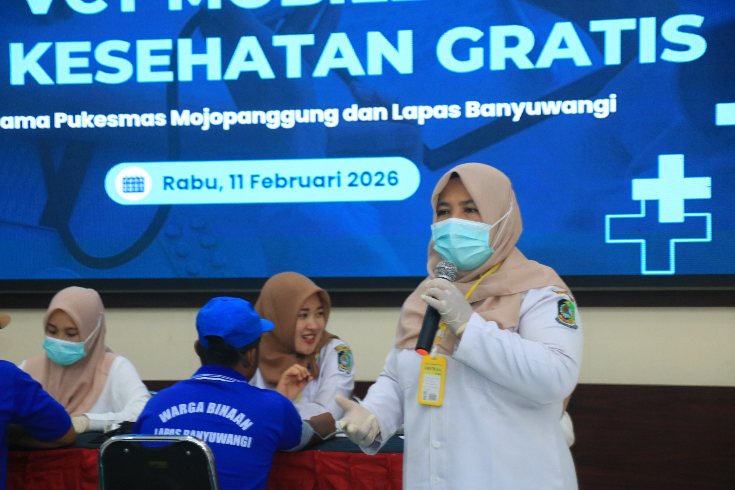 Bekerja sama dengan Puskesmas Mojopanggung, Lapas Banyuwangi menggelar pemeriksaan kesehatan rutin serta tes Voluntary Counseling and Testing (VCT), Rabu (11/02).